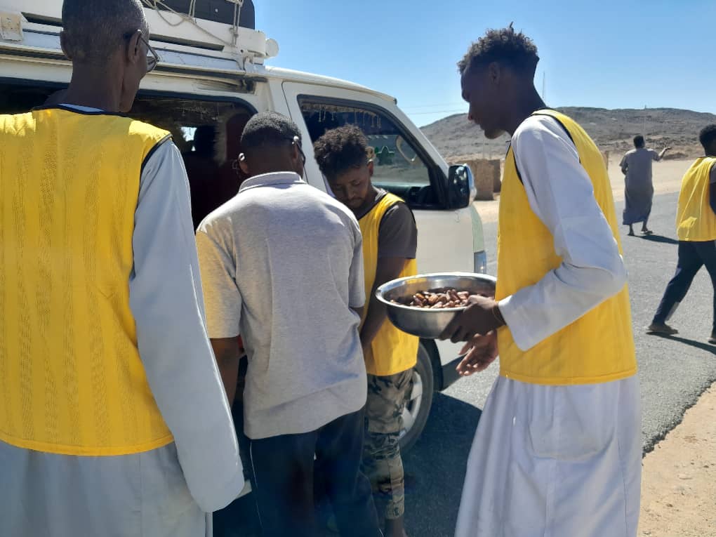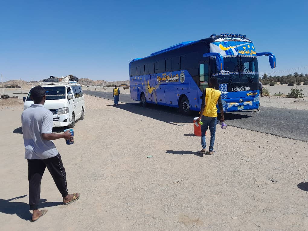 On the way to the border between Sudan and Egypt,in the place Abusara in the norhteren state in Sudan, its people initiated point to sopport fleeing people from Khartoum to Egyppt with food and water.